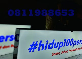 Neon box akrilik bertuliskan #hidup100persen menjadi salah satu contoh media visual promosi yang mampu menarik perhatian dengan desain modern dan pencahayaan yang merata. Dengan kombinasi warna biru terang pada tulisan utama serta aksen merah pada tagline “Sadar, Sehat, Produktif dan Bahagia”, neon box ini tampil sangat kontras, jelas, dan profesional. Neon box ini sangat cocok […]