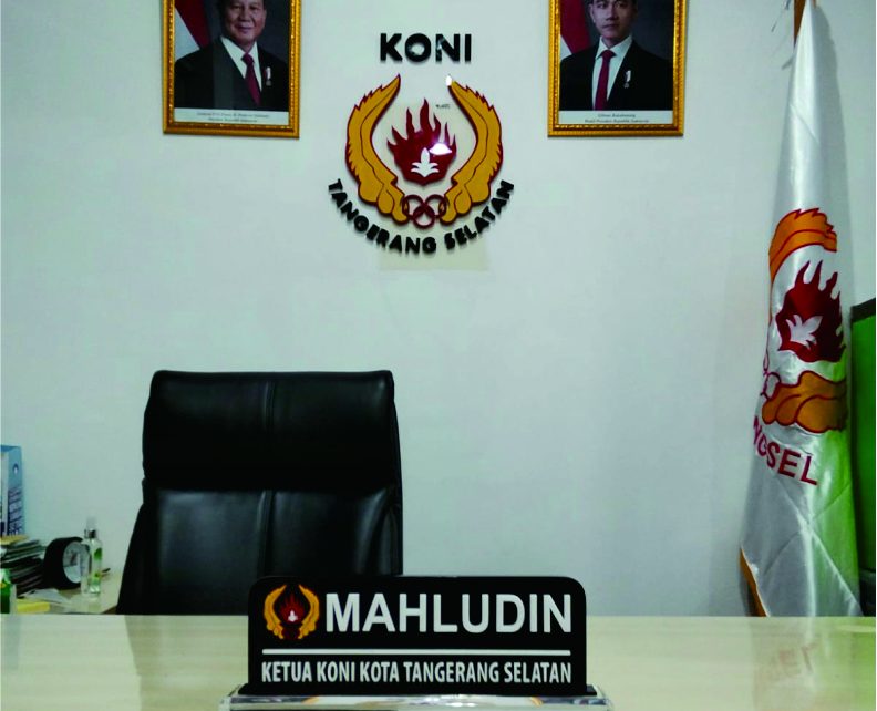Logo akrilik timbul ini menjadi elemen penting dalam memperkuat branding ruangan kantor KONI Kota Tangerang Selatan.