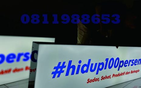 Neon box akrilik bertuliskan #hidup100persen menjadi salah satu contoh media visual promosi yang mampu menarik perhatian dengan desain modern dan pencahayaan yang merata. Dengan kombinasi warna biru terang pada tulisan utama serta aksen merah pada tagline “Sadar, Sehat, Produktif dan Bahagia”, neon box ini tampil sangat kontras, jelas, dan profesional. Neon box ini sangat cocok […]